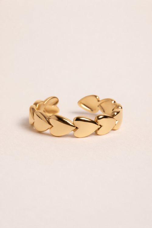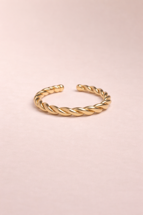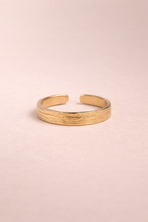 Bague réglable en plaqué or 3 microns à la finition fine striée. Ici en version M.